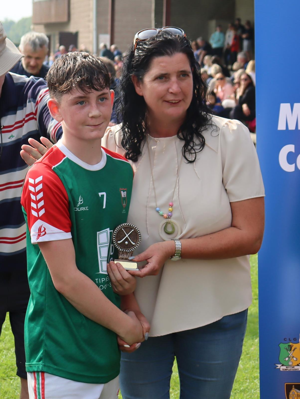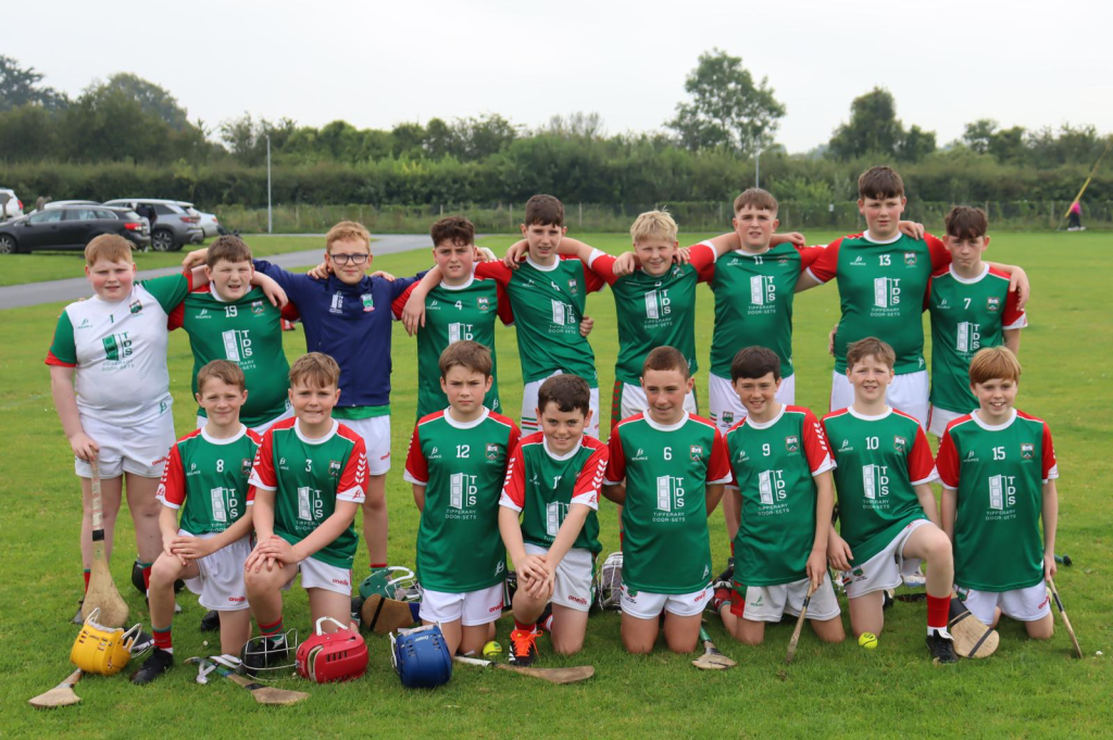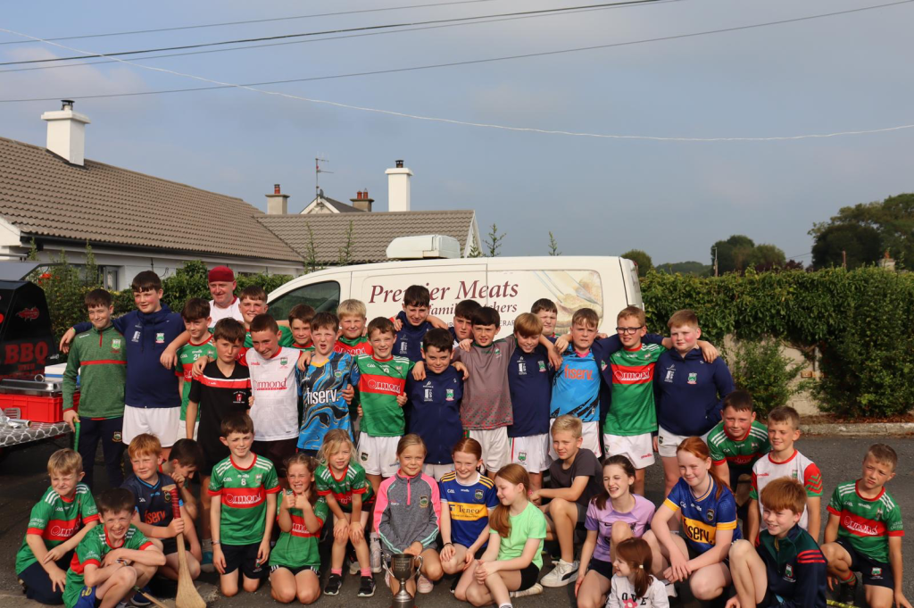 On Saturday in Holycross the u13 hurlers played Upperchurch in the Mid Final and this was a really exciting match with the result in doubt right up to the end. 5 points to 1 down after 5 minutes was not the ideal start but the boys never panicked and a fine goal really turned the tide in our favour. We followed up very quickly with a second goal and it was game on. 2 points down at half time, the team talk in the dressing room seemed to inspire the lads into action as they took the game to Upperchurch from the throw in. The energy levels were fantastic and every single player was winning their own battle. Upperchurch had a purple patch in the middle of the half but we came right back into it with 5 minutes to go and 2 great goals sealed a famous win. Final score was 5.09 to 3-13. The joint captains Tadgh Stapleton and Mikey Loughnane were presented with the cup and Dylan Considine was the very deserving Man of the Match. Afterwards the team, management and parents were treated to a Barbecue back in the village courtesy of Denis O Reilly of Premier Meats. This was a lovely gesture from Denis who was also one of the sponsors of the food for our Golf Classic and he deserves the support of everyone for his generosity. Next up for the team is the County semi finals.
