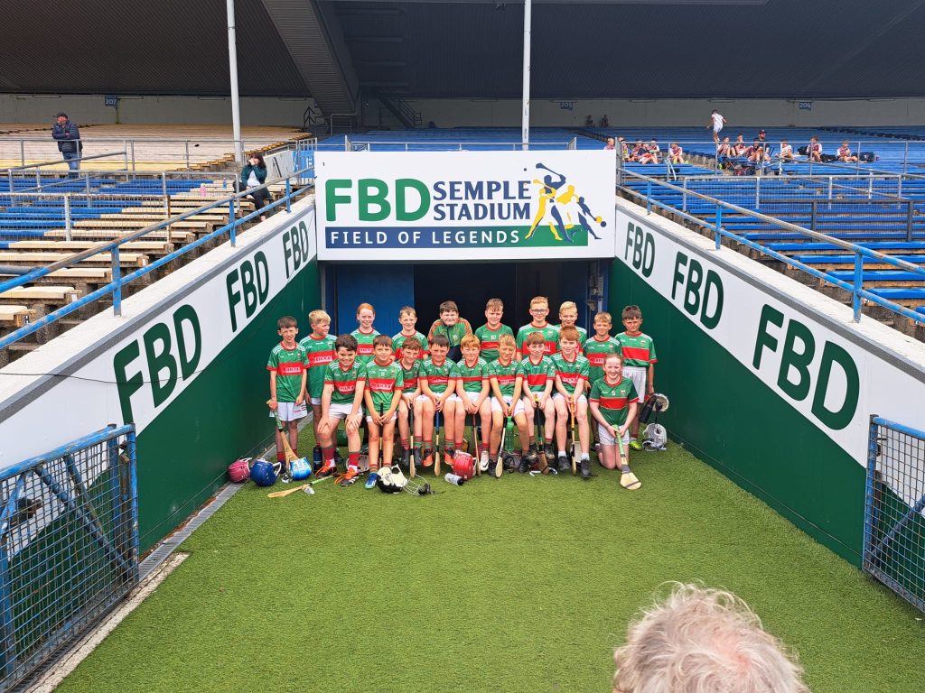 Loughmore Castleiney Under 11s participated in a hurling blitz in Semple Stadium on Wednesday 14th of August. We played Ballygunner, St. Patrick’s of Limerick and Moneygall. A great experience playing on the pitch followed by a tour of the dressing rooms and lifting the minor and under 20 trophies up in the new stand.