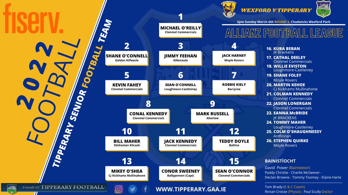 On Sunday the hurlers travel to Waterford to face the Deise at 1:45 in Walsh Park while the footballers will play the rescheduled game against Wexford in Wexford Park on the same day at 2pm. Brian and John McGrath are selected to start for the hurlers with Noel McGrath starting on the bench. For the footballers Sean O’Connell is selected to start at centre back with Willie Eviston and Tommy Maher making the bench.